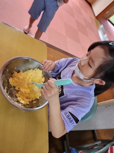 今日は昼食作りで、サンドイッチ フライドポテト、ワカメスープ フルーチェを、みんなで分担して作りました。 卵頑張りました❣️ 野菜を切りました❣️ パンのみみを切りました❣️ シーチキン頑張りました❣️ ワカメスープ用の卵を割りました❣️ ポテトを揚げまし…