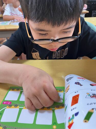 本日のプログラムは工作❗️でもしてみようかなぁと思いまして… プラモデルやドールハウスのキットを使って遊びました。 1年生はシール帳で遊びました❣️ 腕にも貼っちゃった 上級生たちの工作❣️ 細かい作業でしたが、手指の運動になったかなぁ〜みんな最後まで…